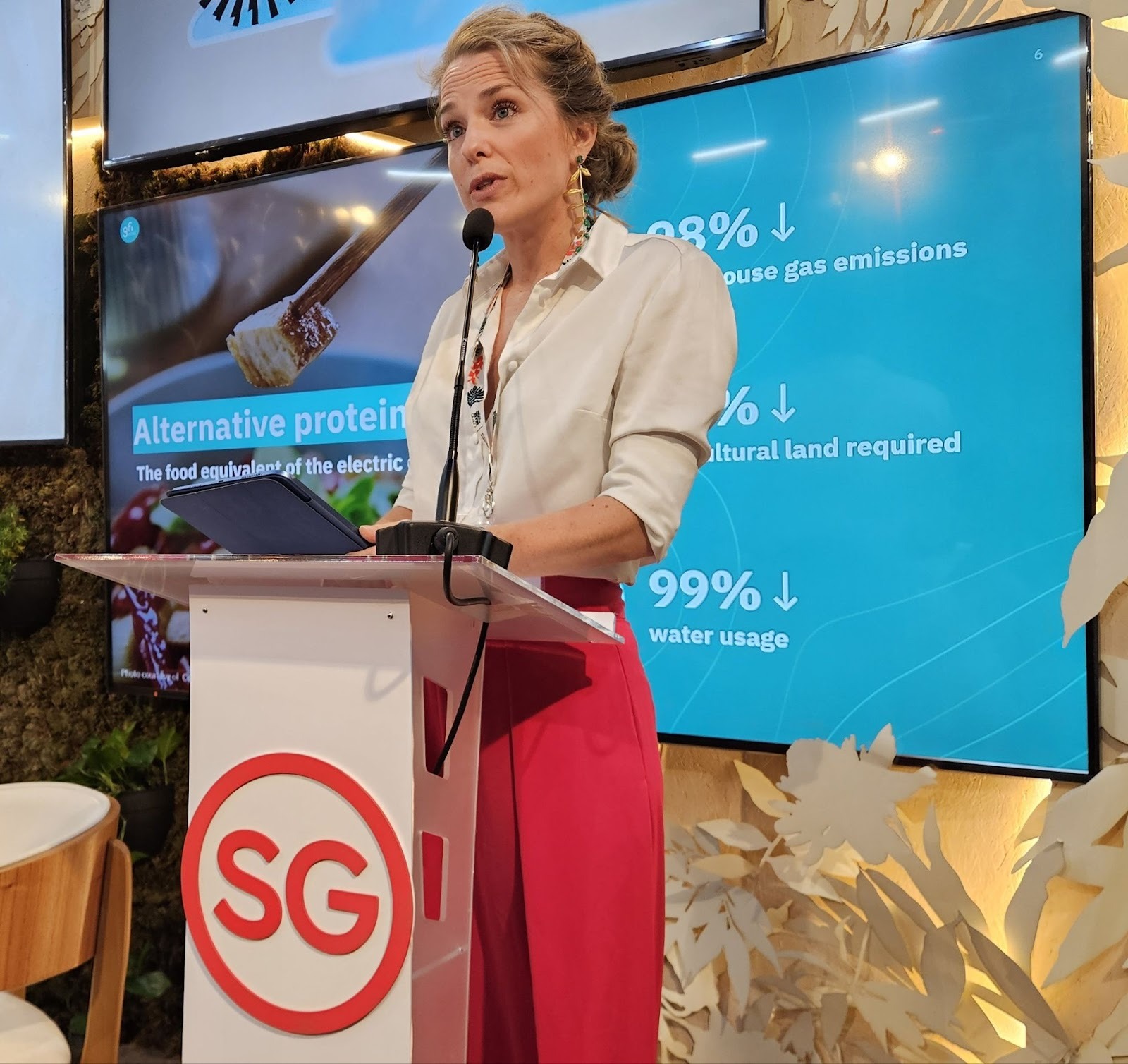 One of the most jarring statistics of the conference came from GFI APAC CEO Mirte Gosker, during her address to climate leaders from Brazil, Singapore, China, and the US: “Even though food and agriculture account for one-third of all global emissions, the sector has received less than five percent of the climate financing.” Without fixing this discrepency, Gosker said, sustainable proteins cannot scale at the speed we need.