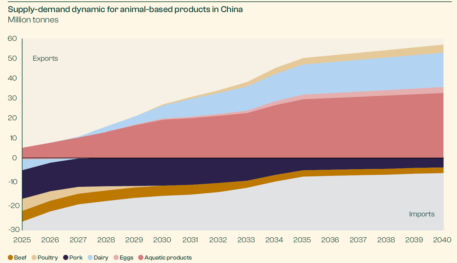 By 2040, Systemiq projects that China will completely flip its current positioning as the world’s largest importer of animal proteins to become a net protein exporter.