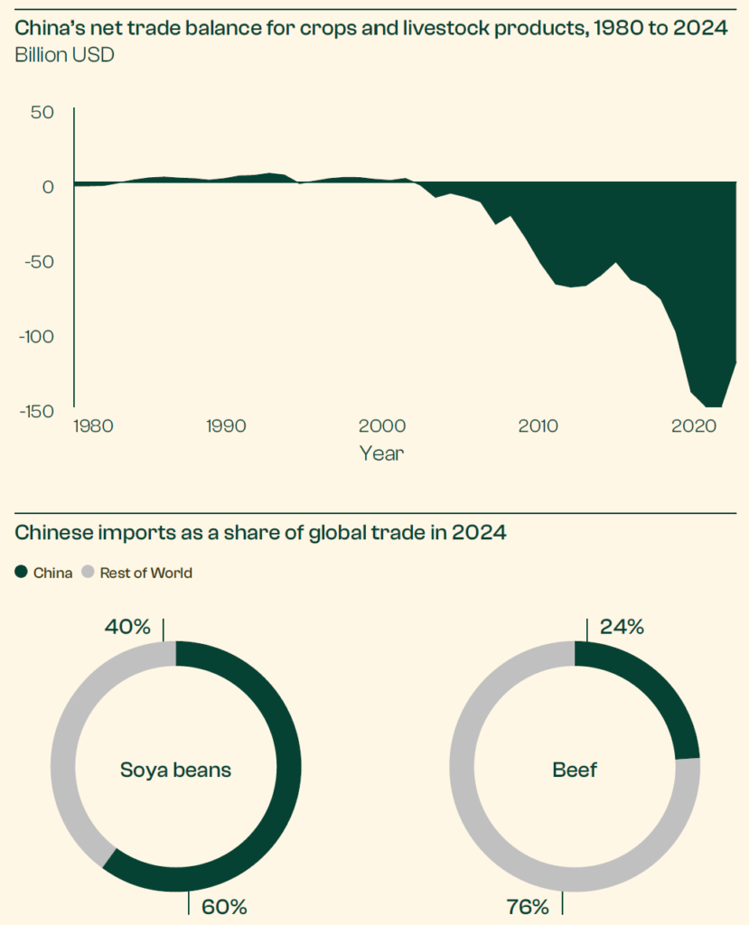 However, one must also weigh those efforts against China’s current agricultural position to assess future macroimpacts. Starting in the early aughts, China began increasing imports of agricultural products in response to surging domestic demand. That means even getting back to baseline self-sufficiency will be a monumental lift.